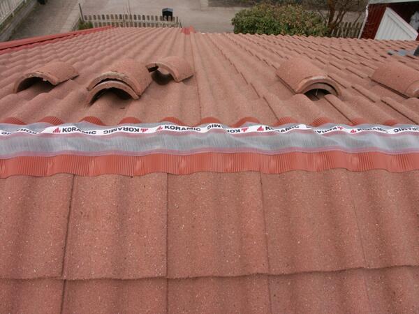 Regn och snö, men även löv och smuts blåser lätt in i det öppna utrymmet som finns mellan nockpannorna och de vanliga pannorna. Med vår nocktätning av aluminium förhindrar man detta utan att man försämrar takets ventilation.